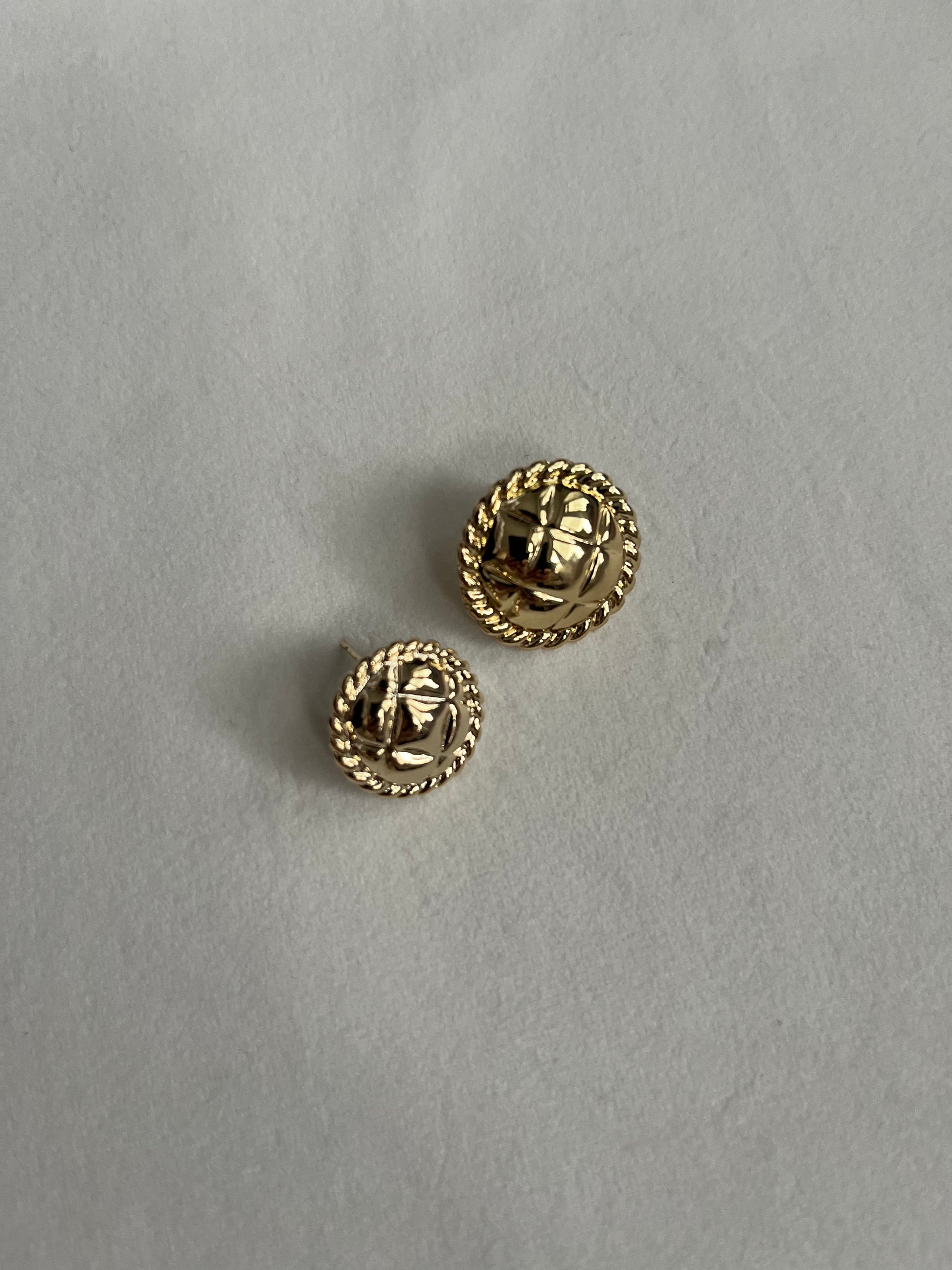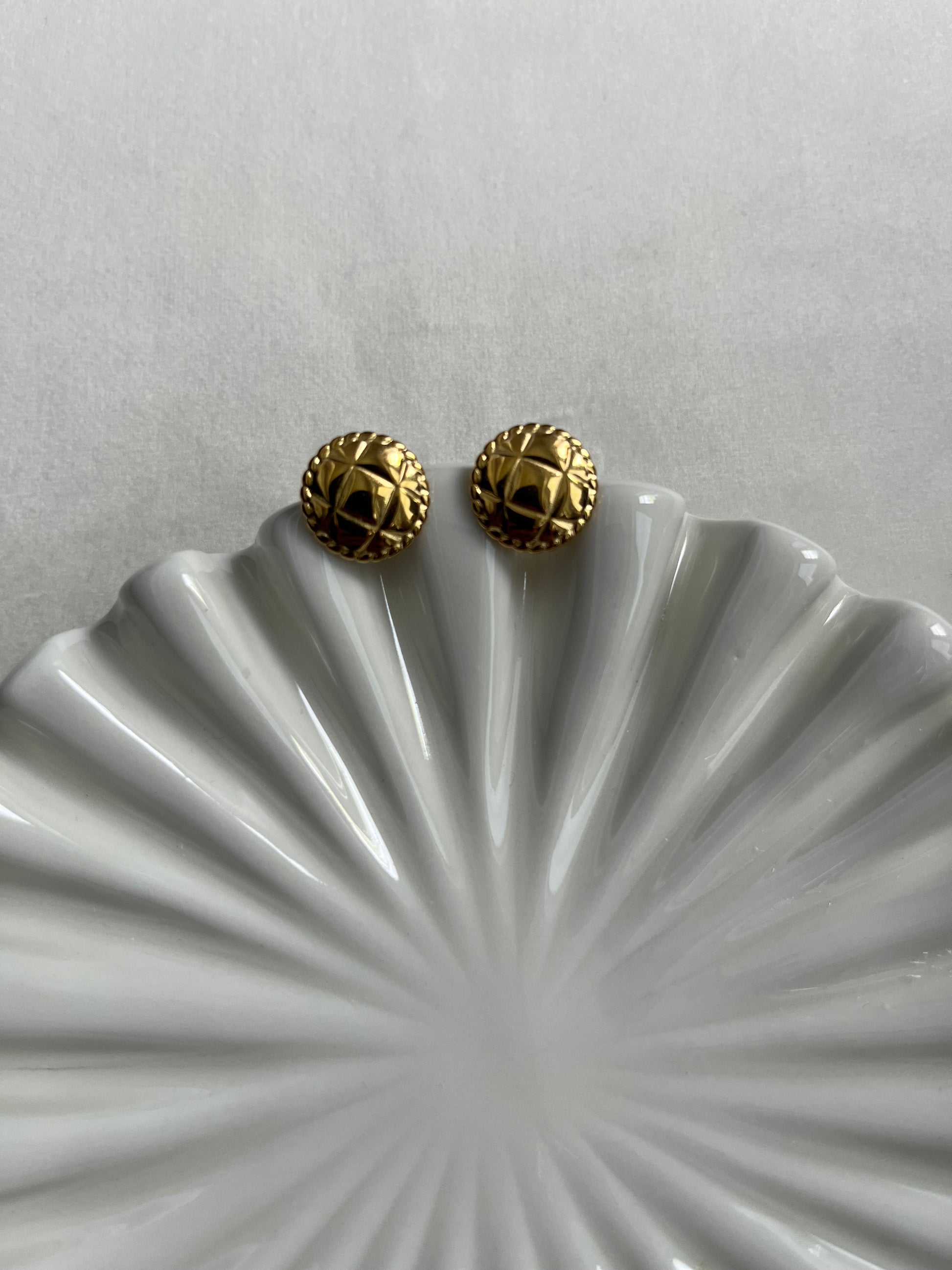 18K Gold plated stainless steel vintage style coin stud earrings. For pierced ears.