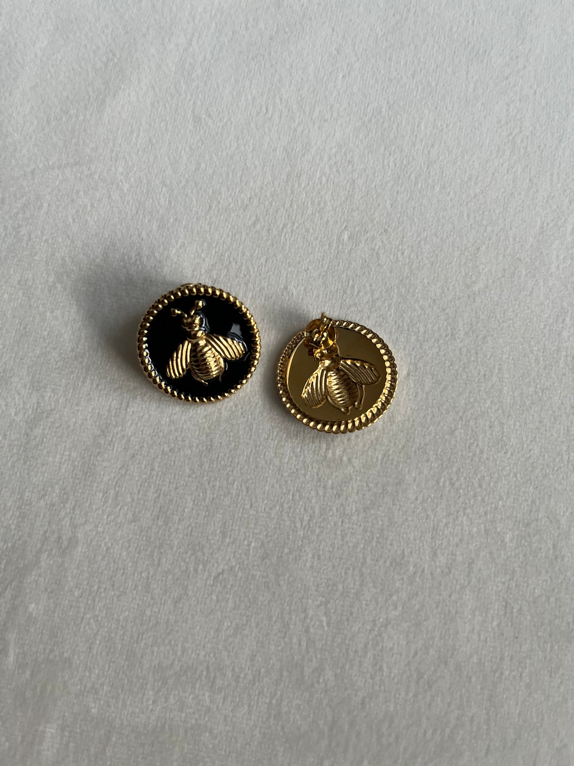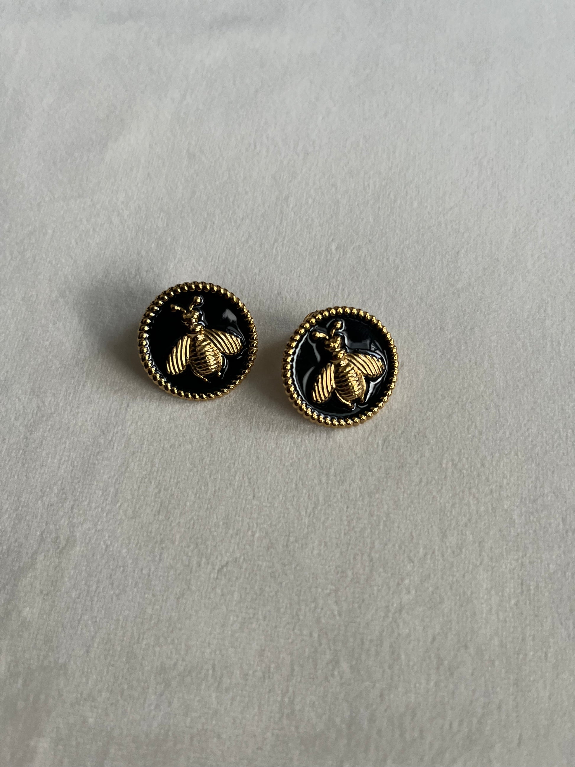 18K gold plated stainless steel and black enamel oversized vintage style earrings.