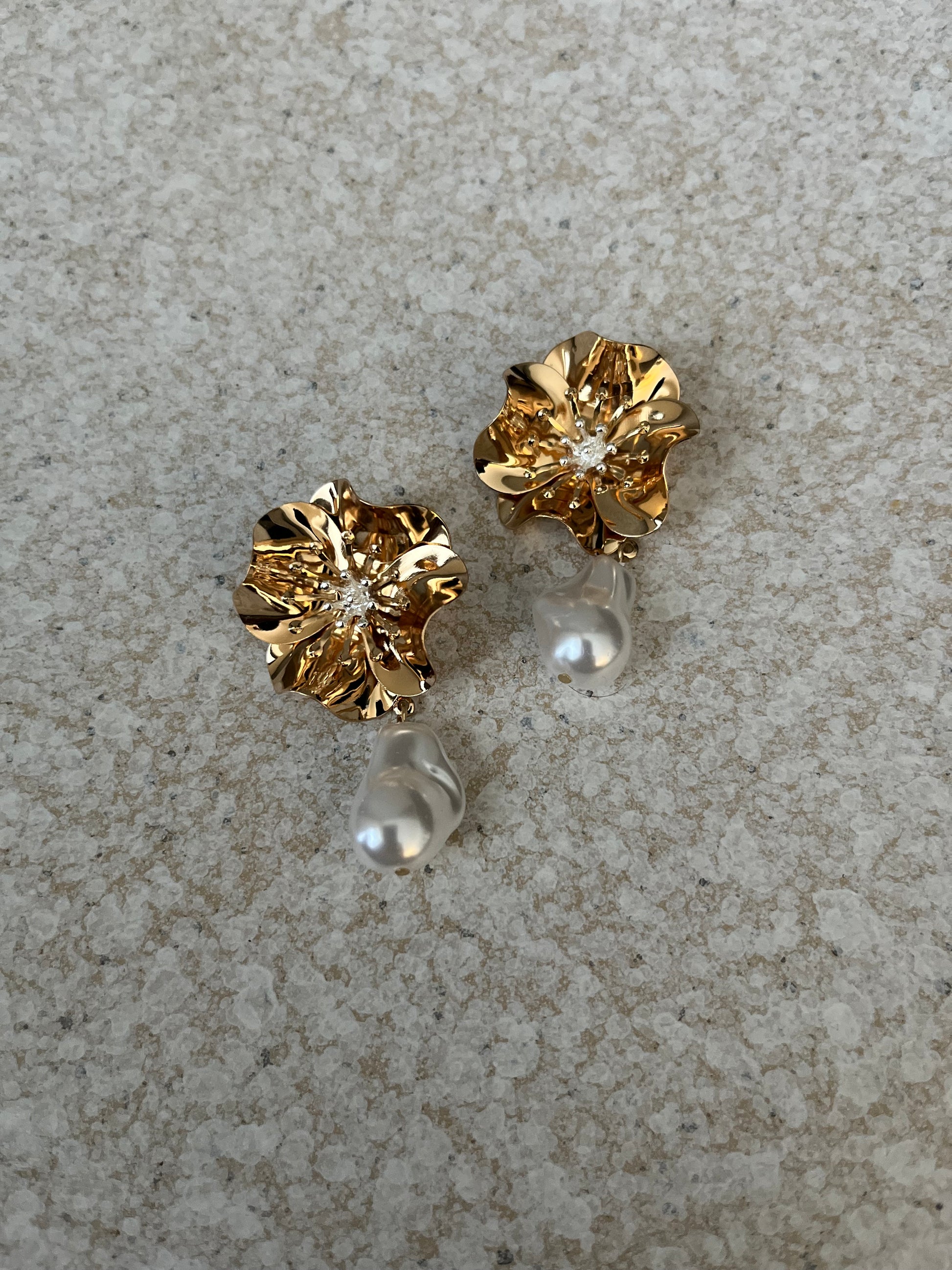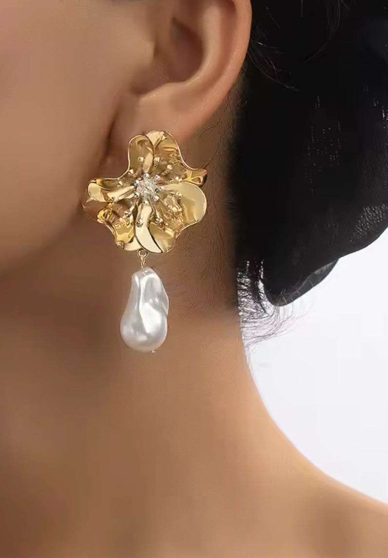 Gold plated brass and faux pearl oversized statement earrings.