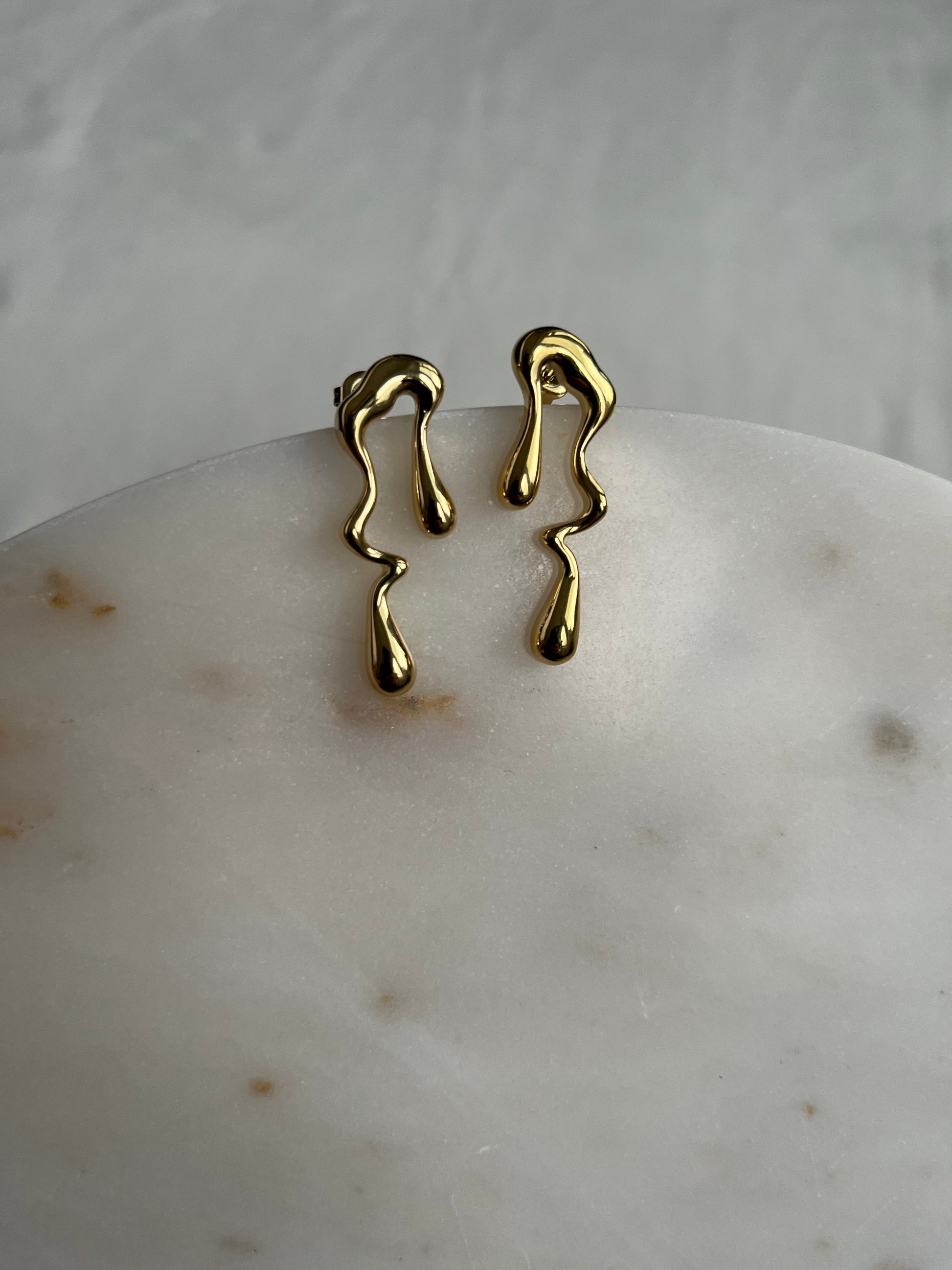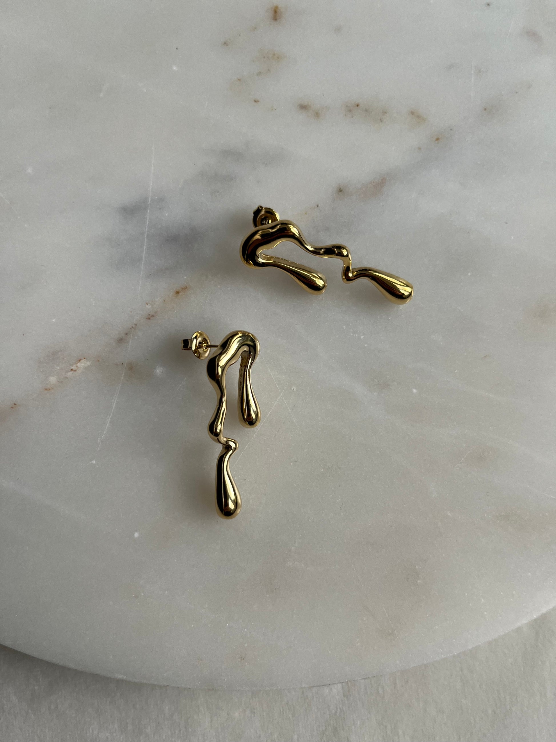 14K gold plated stainless steel ‘drip’ effect earrings. Designed to be worn in either direction. Lightweight.