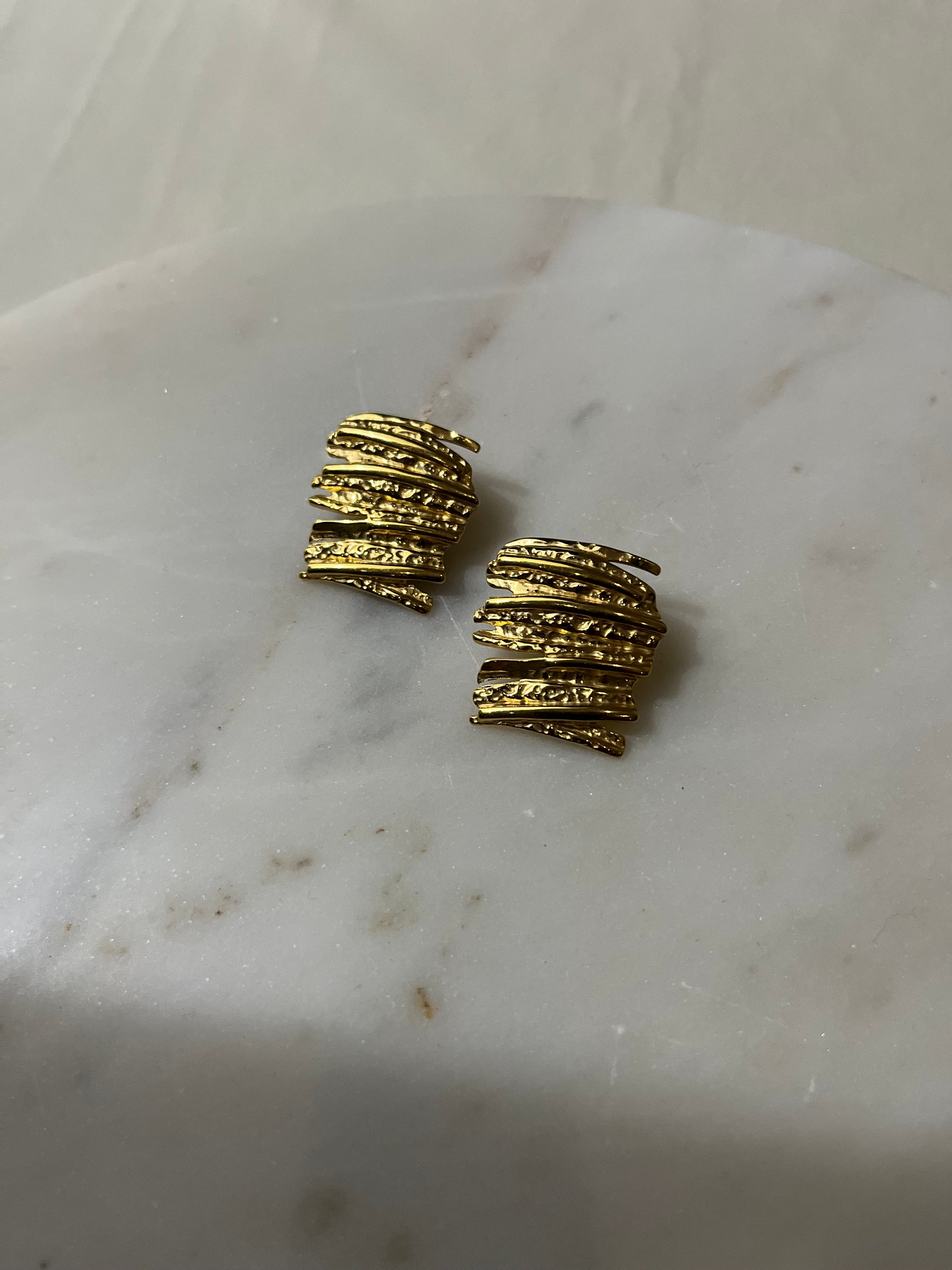 18K gold plated stainless steel oversized earrings in a distressed ribbed design.
